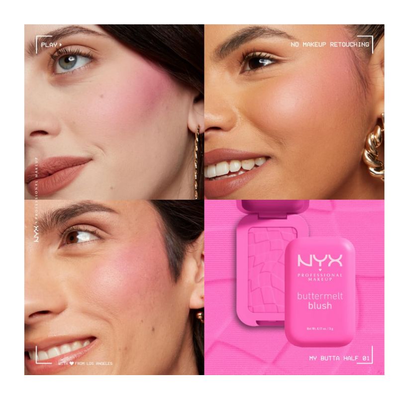 El rubor en polvo NYX PROFESSIONAL MAKEUP Buttermelt ofrece un acabado suave y difuminado que se funde fácilmente con la piel, aportando un toque de color natural y favorecedor. Su textura sedosa permite una aplicación uniforme y modulable, logrando desde un efecto sutil hasta un look más intenso sin parches ni acumulación de producto.