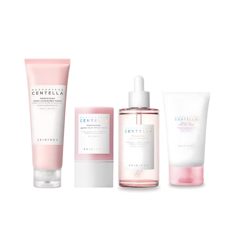 La rutina SKIN1004 Madagascar Centella Poremizing está diseñada para limpiar, equilibrar y mejorar la apariencia de los poros sin resecar la piel. Comienza con el Poremizing Foaming Cleanser, que elimina impurezas y exceso de grasa, seguido del Poremizing Ampoule, que hidrata y ayuda a regular el sebo, mejorando la textura de la piel.